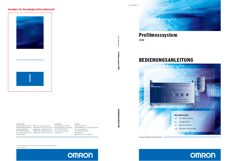 Alle Rechte vorbehalten. Diese Publikation darf ohne vorherige schriftliche Genehmigung von OMRON weder als Ganzes