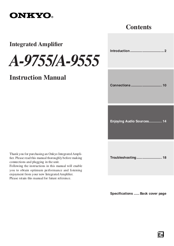 Thank you for purchasing an Onkyo Integrated Amplifier. Please read this manual thoroughly before making