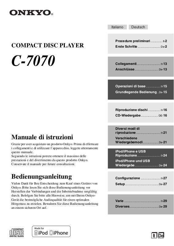 Grazie per aver acquistato un prodotto Onkyo. Prima di effettuare
