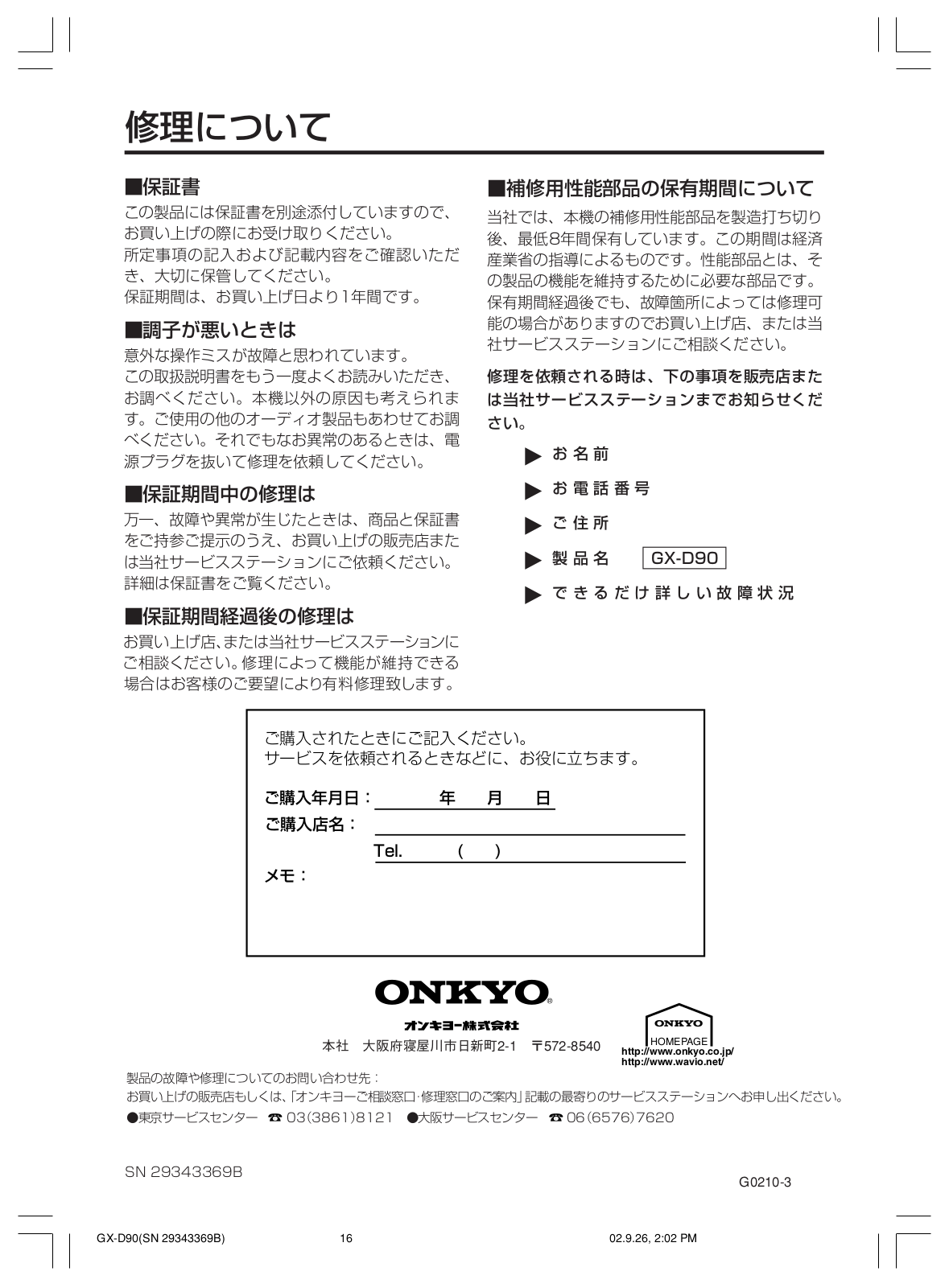 ONKYO GX-D90 User Manual