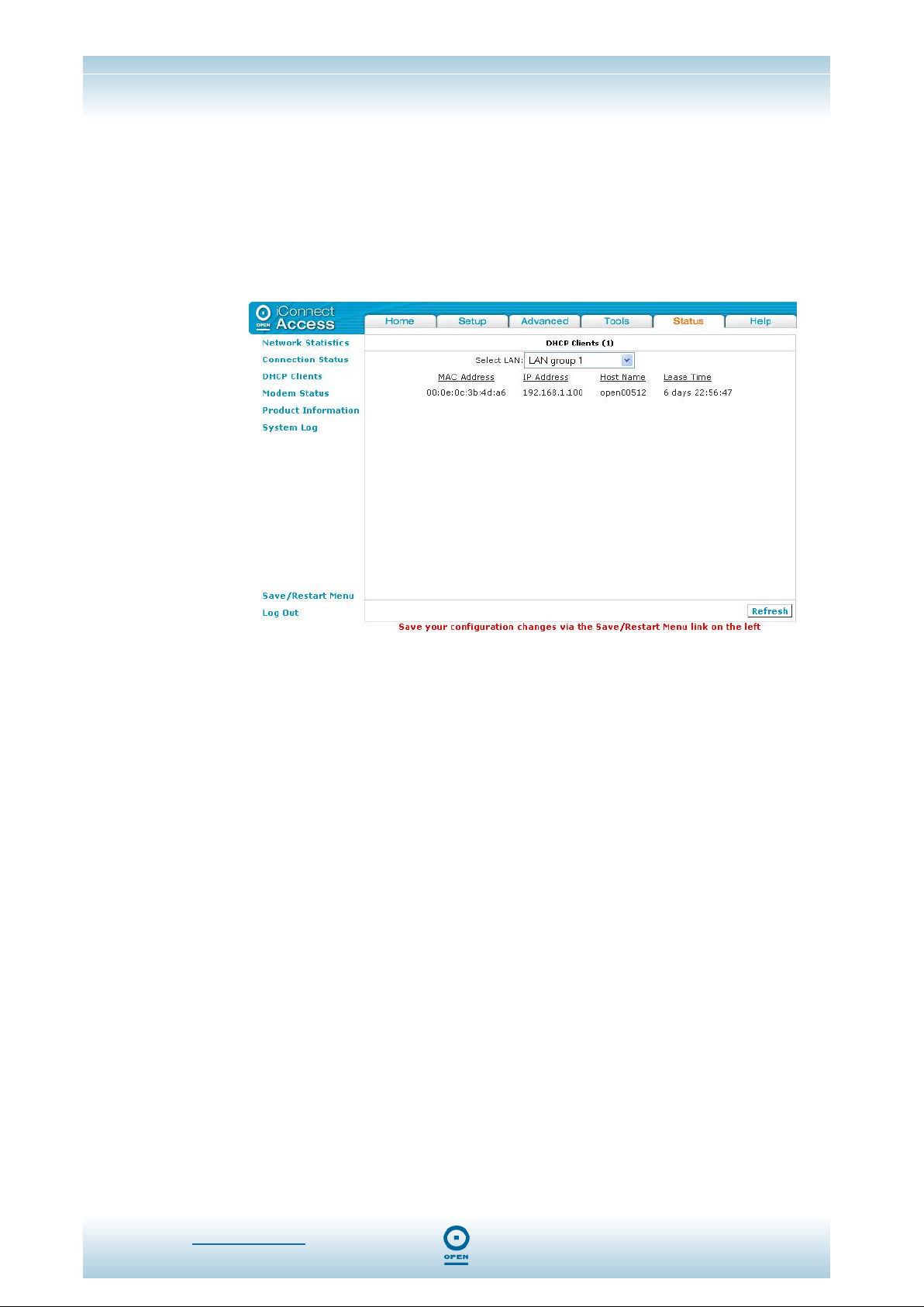 Select the DHCP Clients menu item from the Status menu list to view the list of DHCP