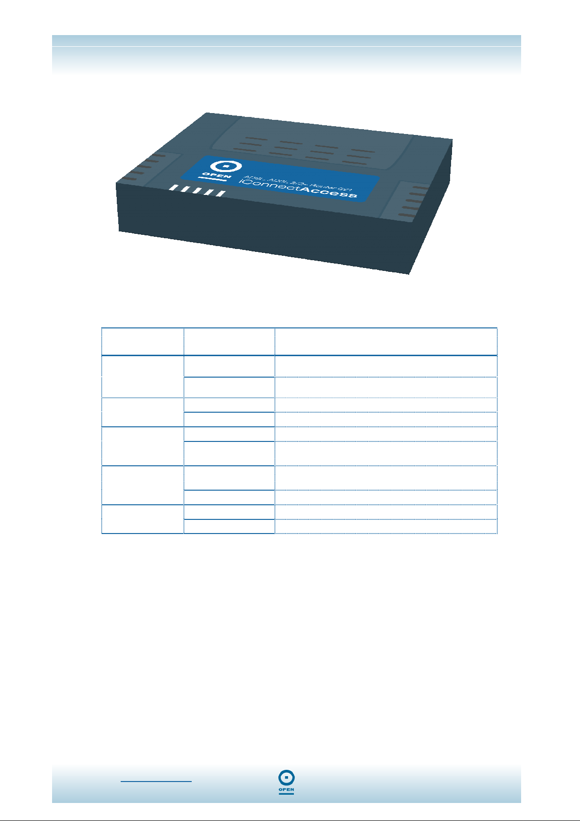 The iConnectAccess621 has different ports and LEDs. The following list details these: