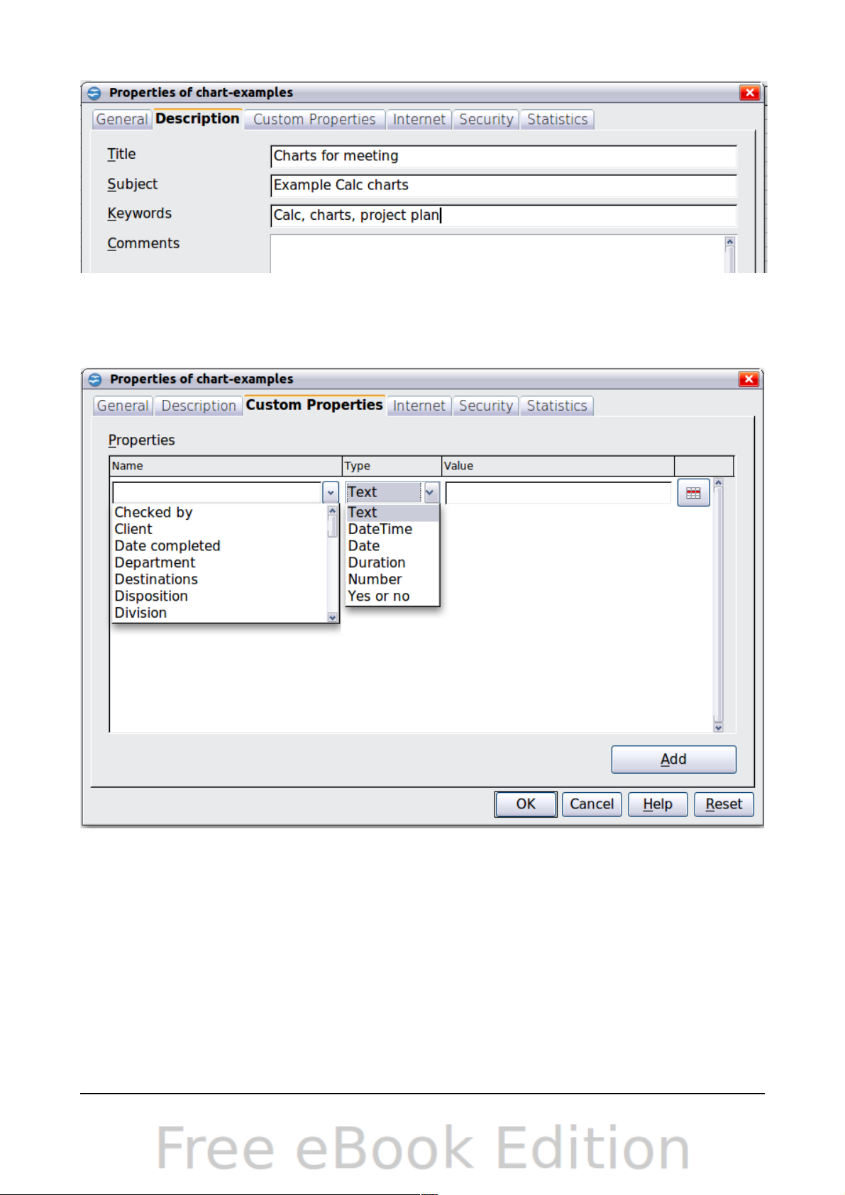 Types of styles in Calc..............................................................................................99