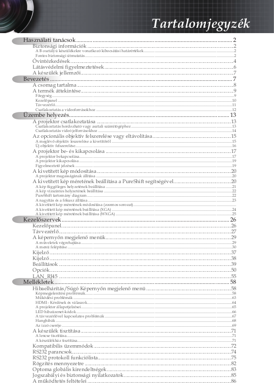 A projektor állapotjelzései ..........................................................................................................................................................65