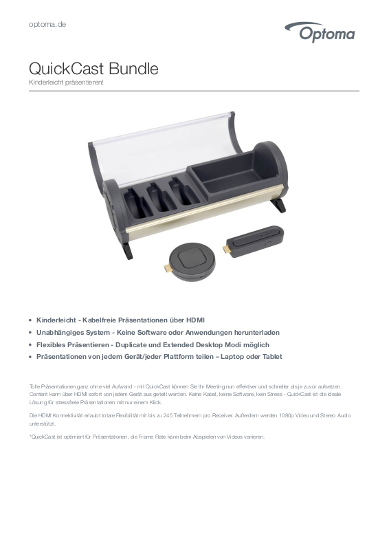 Content kann über HDMI sofort von jedem Gerät aus geteilt werden. Keine Kabel, keine Software, kein Stress - QuickCast ist die ideale