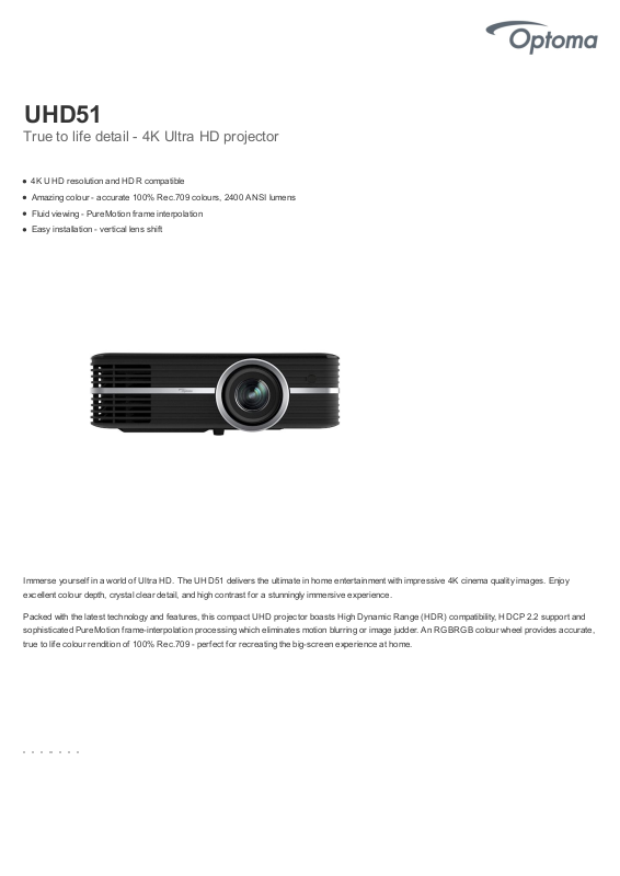 Connections Inputs 2 x HDMI 2.0, 1 x VGA (YP bPr/RGB) , 1 x Audio 3.5mm