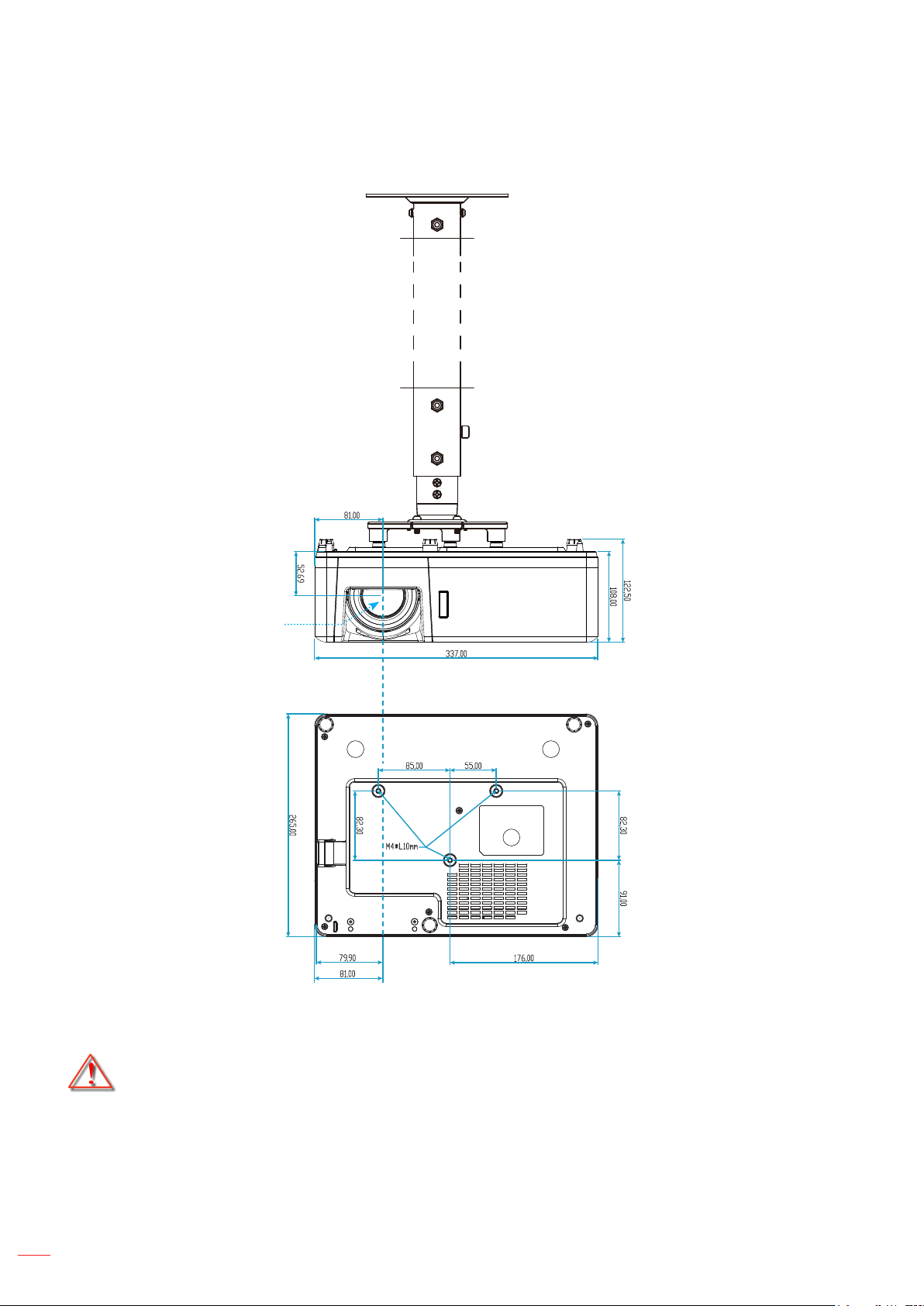 •Należy przestrzegać prawidłowej orientacji montażu projektora ponieważ instalacja niestandardowa może