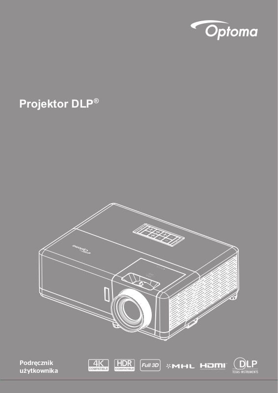 •Oznaczenia dotyczące bezpieczeństwa znajdują się na obudowie projektora.