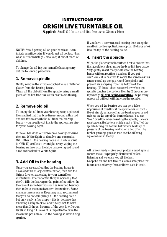 Supplied: Small Oil bottle and lint free tissue 30cm x 10cm