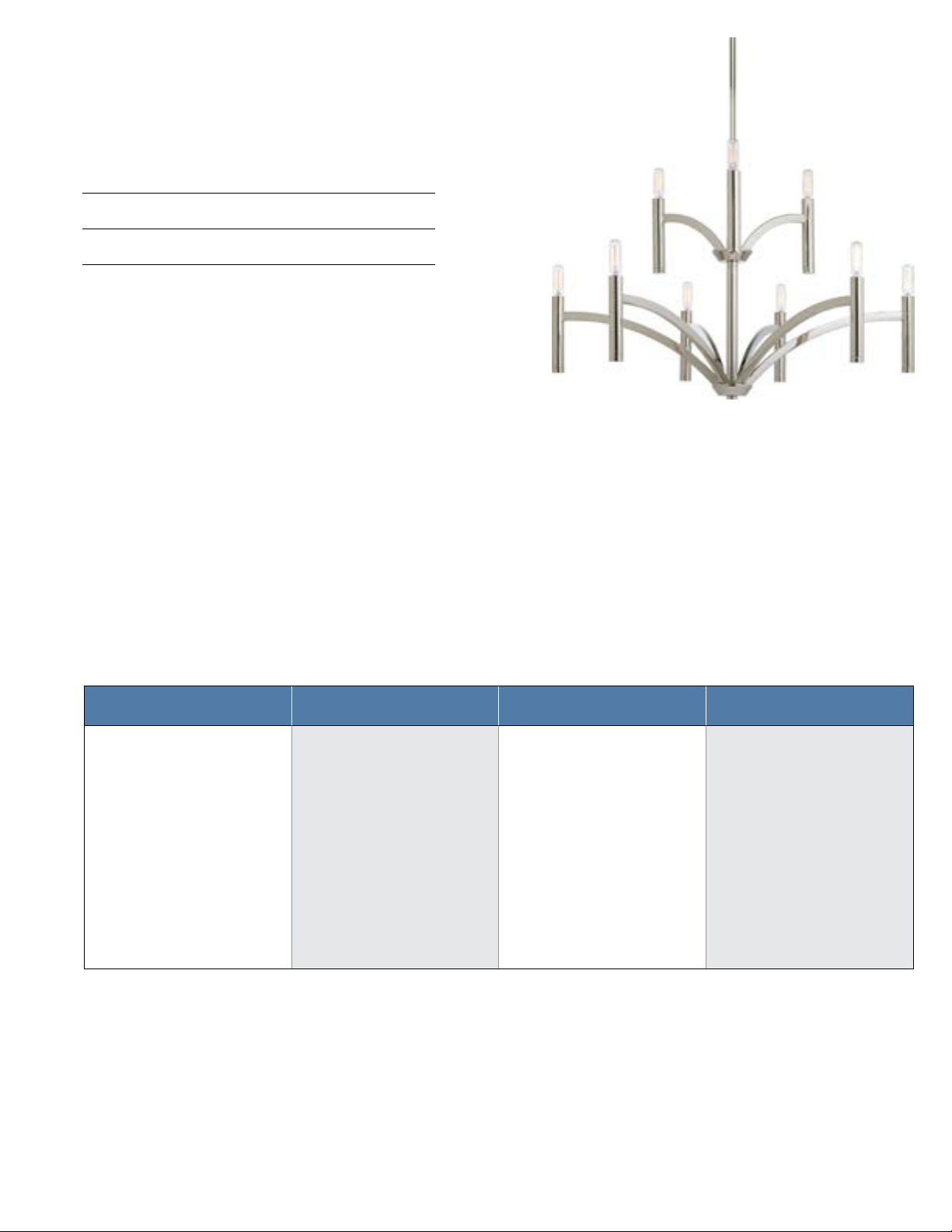 Nine-light, two-tier chandelier inspired by mid-century modern design.