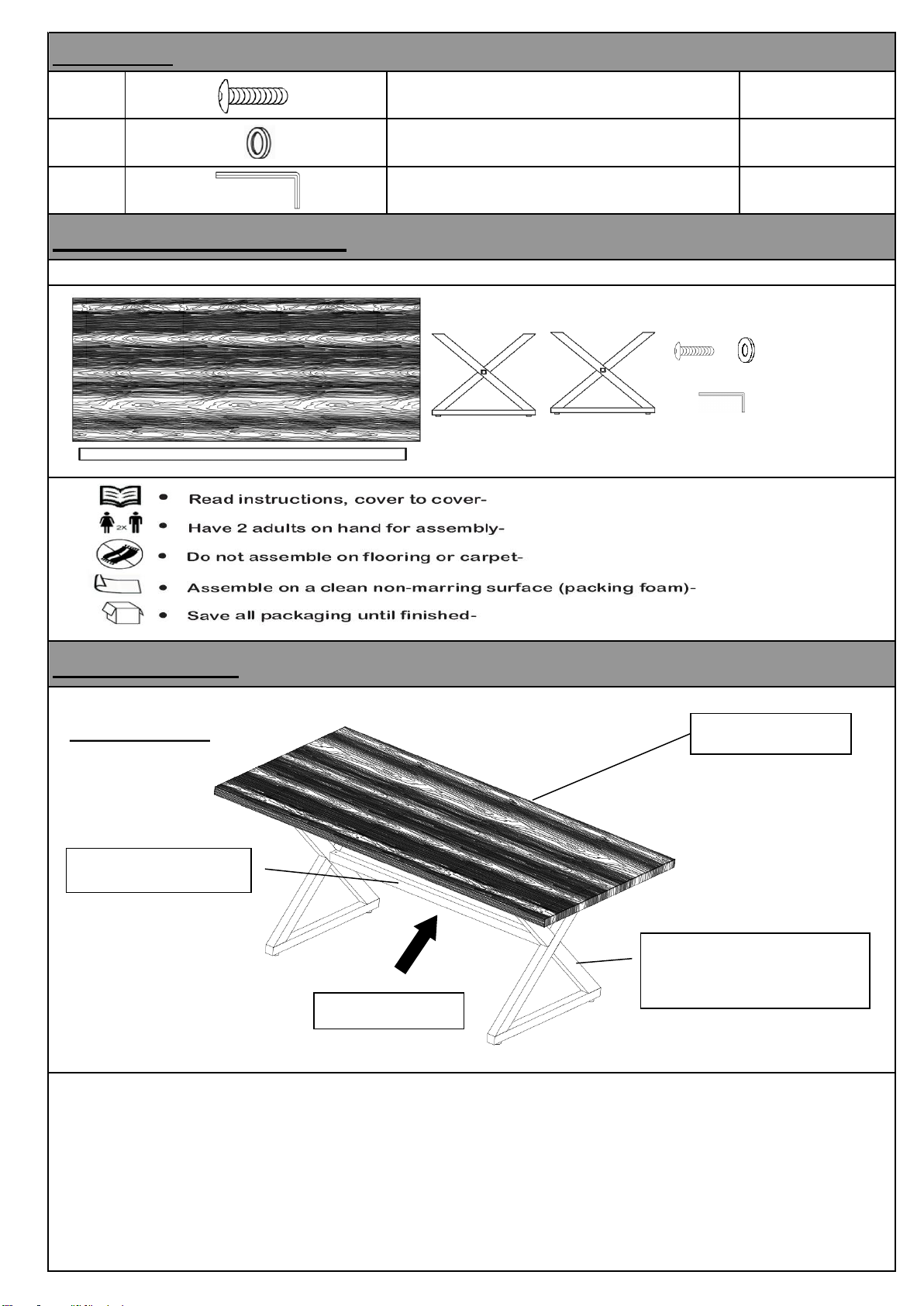 the table top(A) with Bolts(①), Washers(②) by Allen Wrench(③).