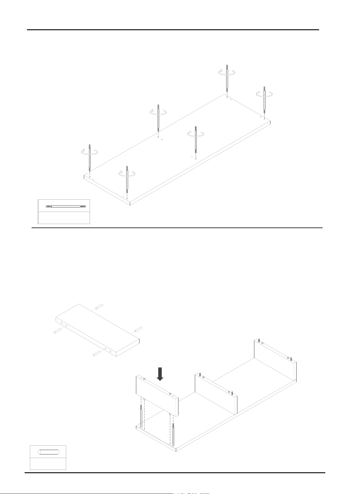 Insert 6 pieces of Double-ended Bolt (A) into the corresponding holes In the Top Panel (1) by hand as shown.