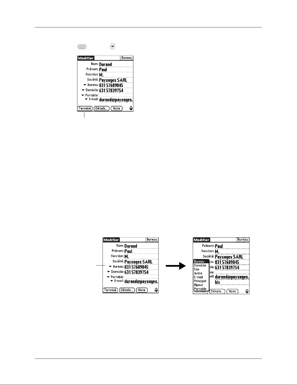 de la liste d'adresses ou dans l'écran de la vue Adresse.