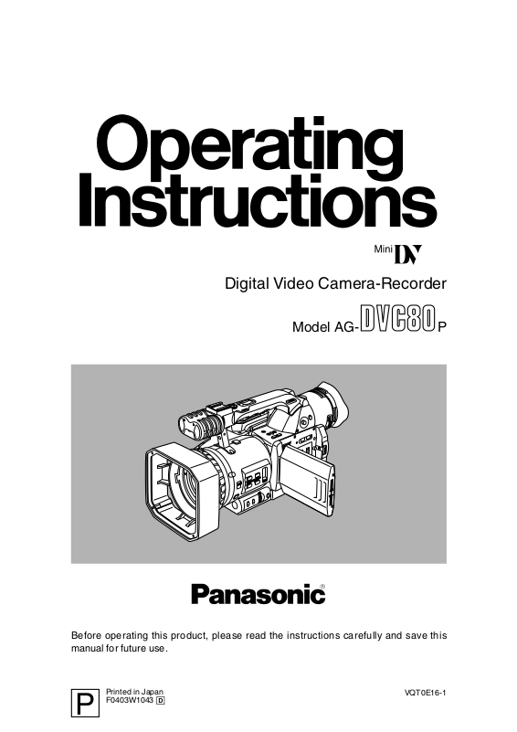 Panasonic AG-DVC80P User Manual