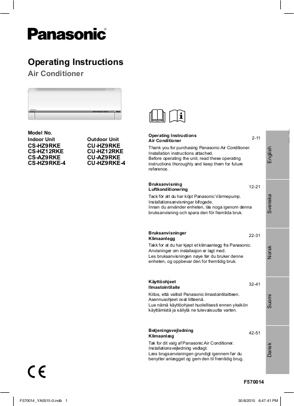 Kiitos, että valitsit Panasonic ilmastointilaitteen.