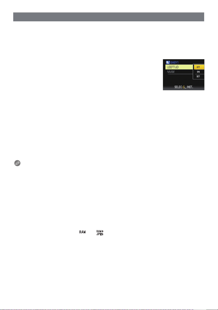 ingesteld is, de leeftijd of naam niet afgebeeld worden. Voordat u beelden maakt, [LEEFTIJD]