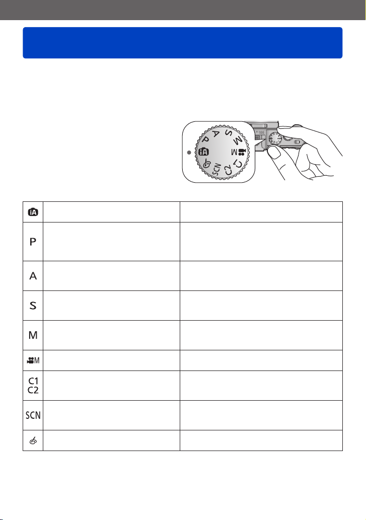 Gebrauch machen, deren Symbole in den Abbildungen des Moduswahlrads rechts