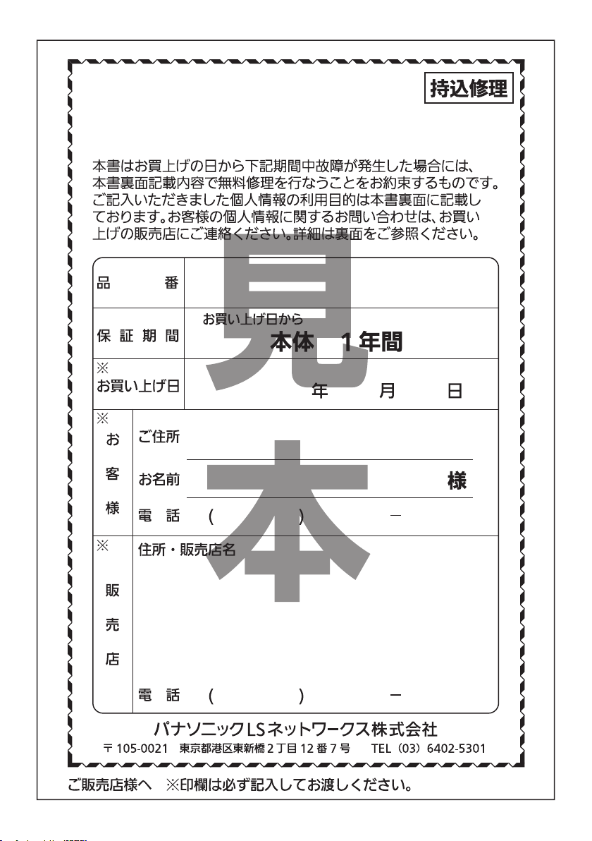 買い上げの販売店または、パナソニックLSネットワークス株式会社にお問