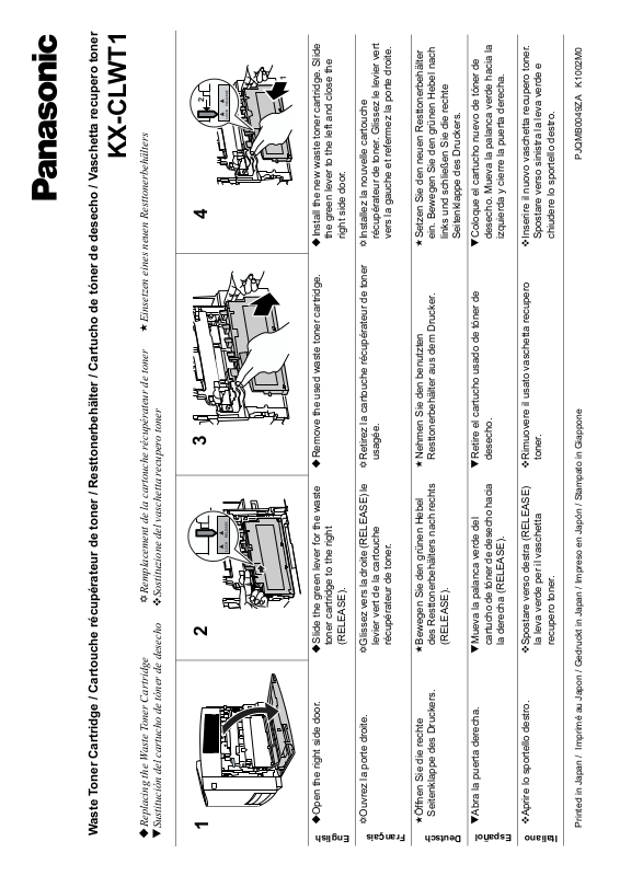 !Replacing the Waste Toner Cartridge "Remplacement de la cartouche récupérateur de toner #Einsetzen eines neuen Resttonerbehälters