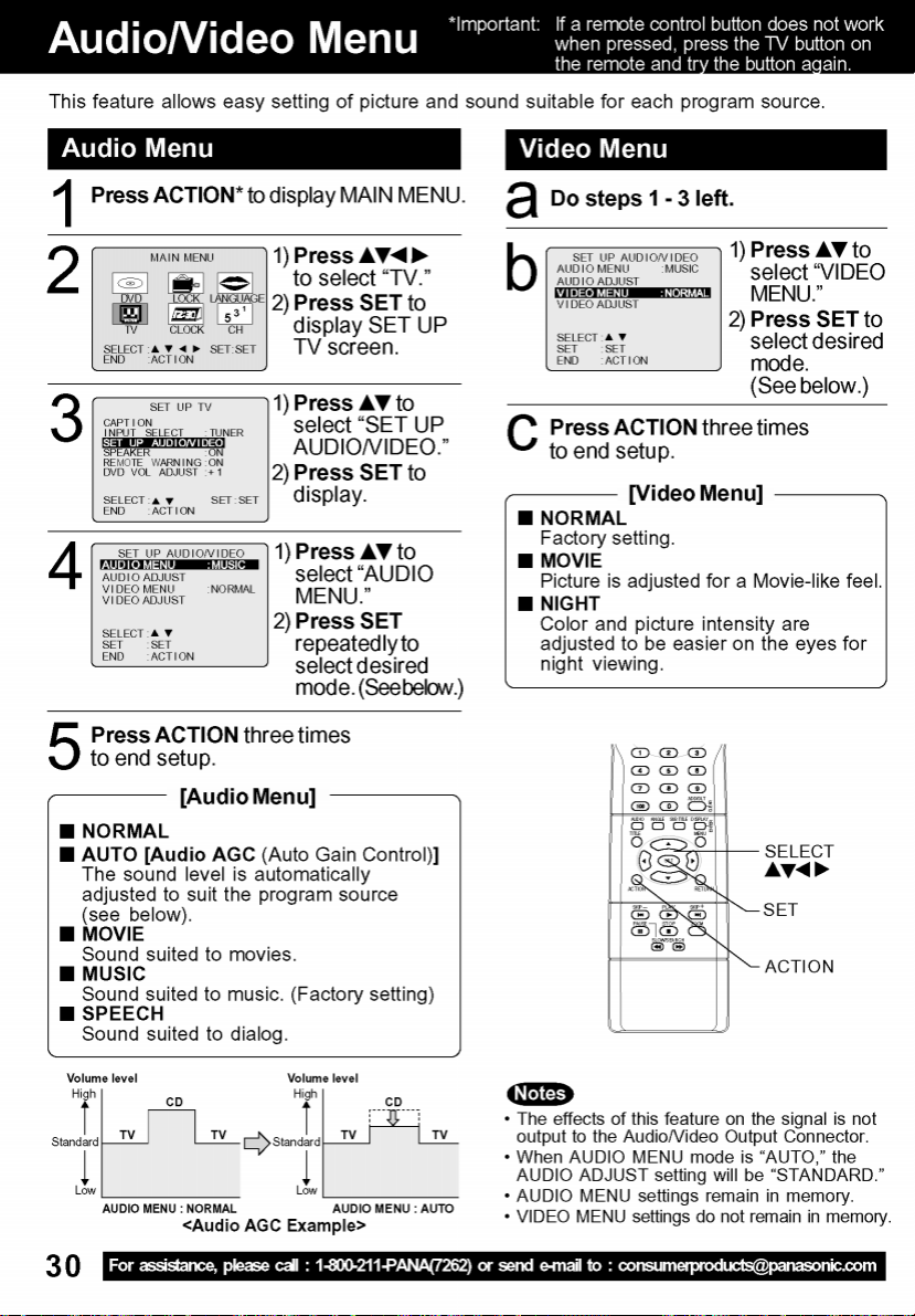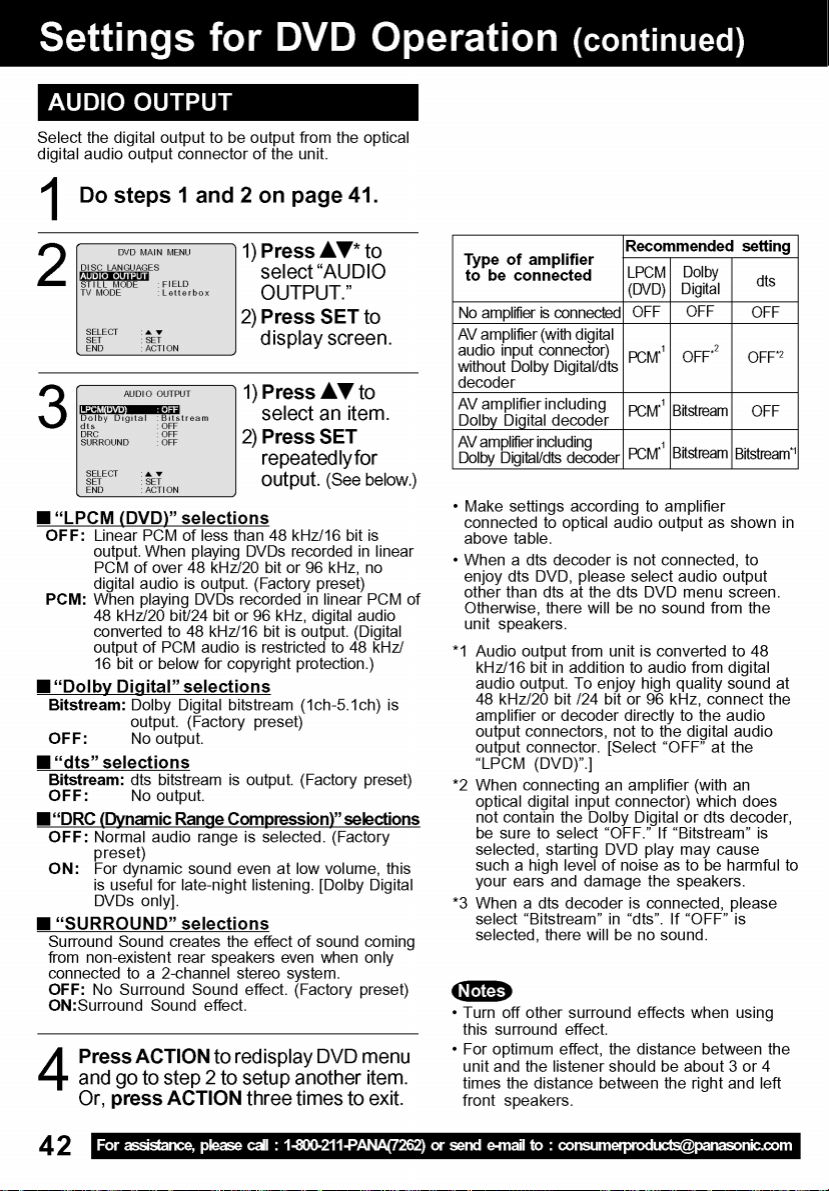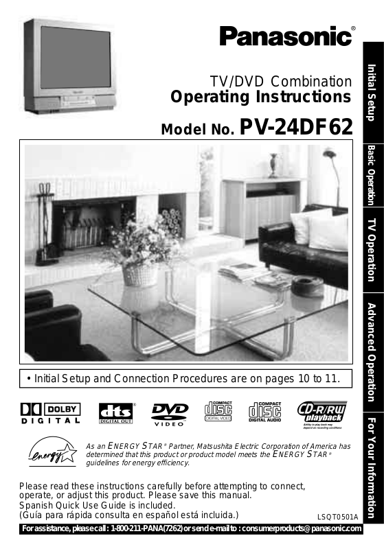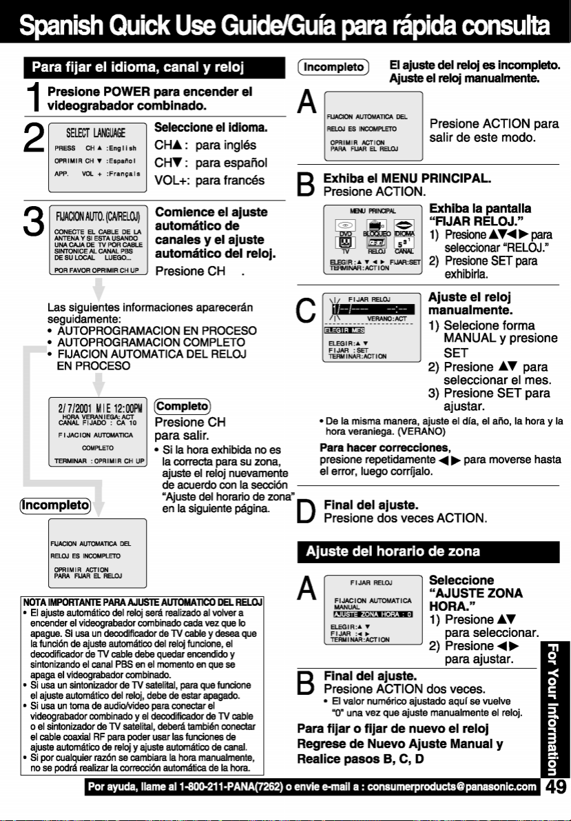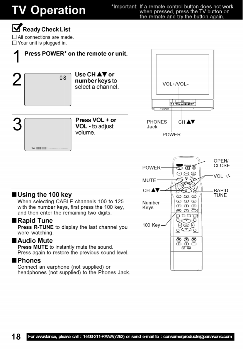 For assistance, please call : 1-800-211-PANA(7262) or send e-mail to : consumerproducts@panasonic.com