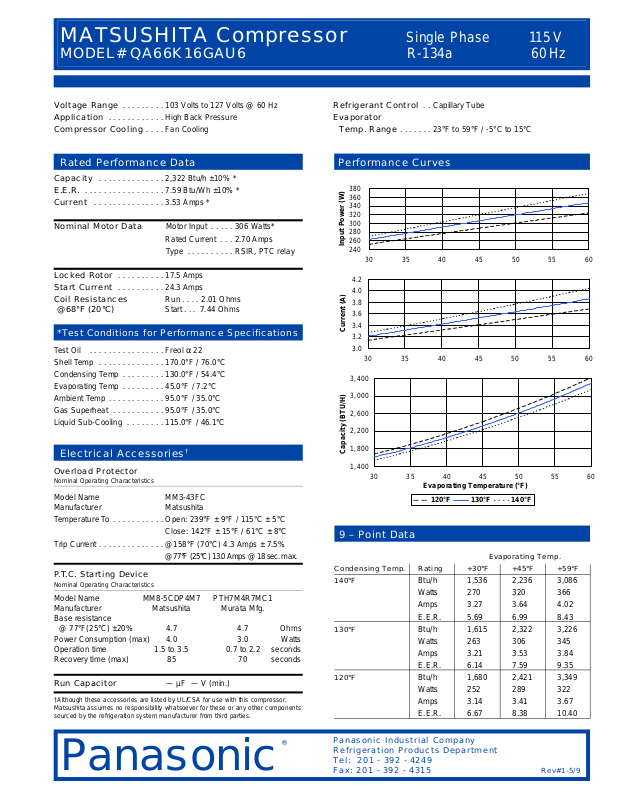 MODEL# QA66K16GAU6 R-134a 60Hz