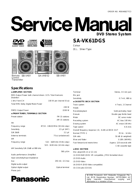 (1) DVD-RAM (DVD- VR compatible, JPEG formatted discs)