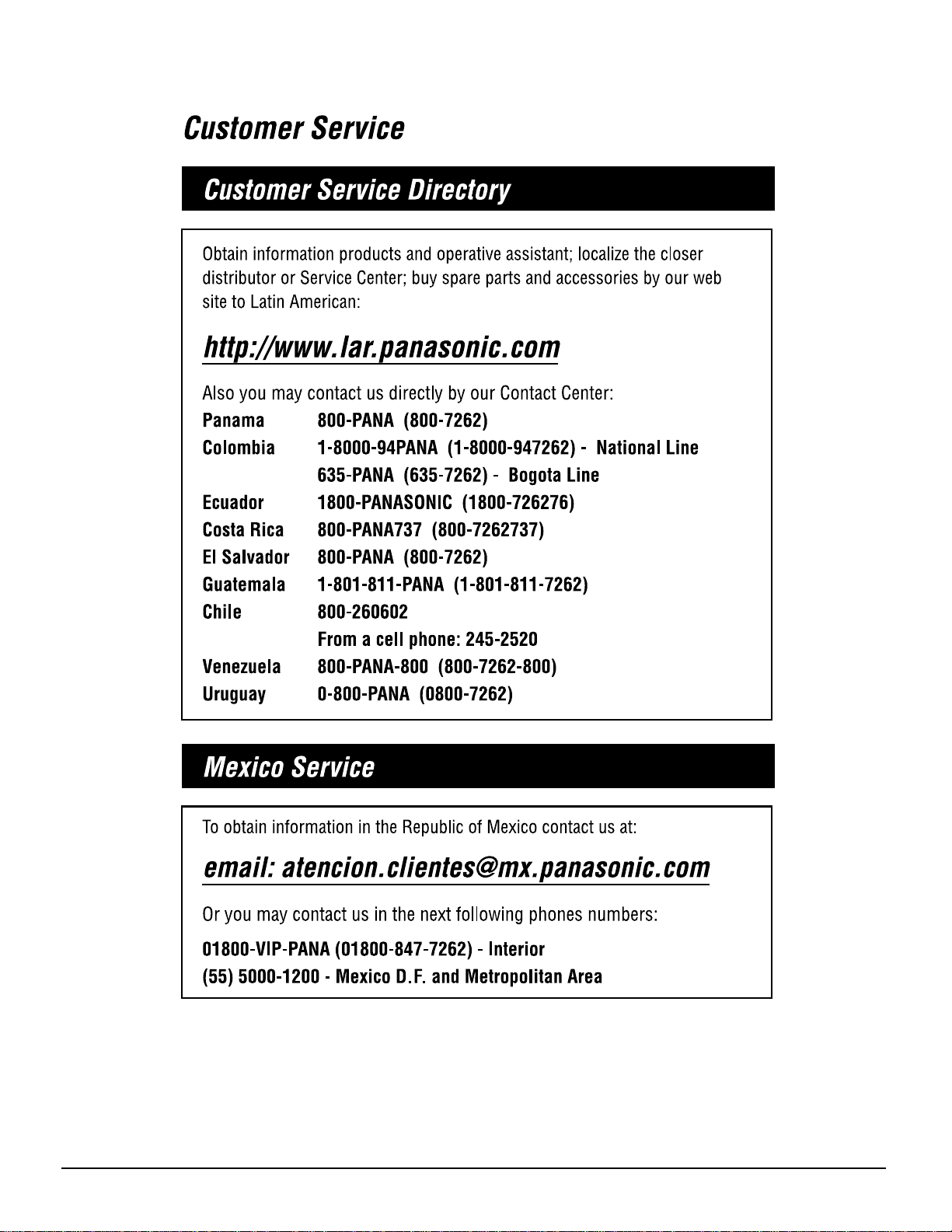 area or to Panasonic Technical Support and Product Services Department, 5770