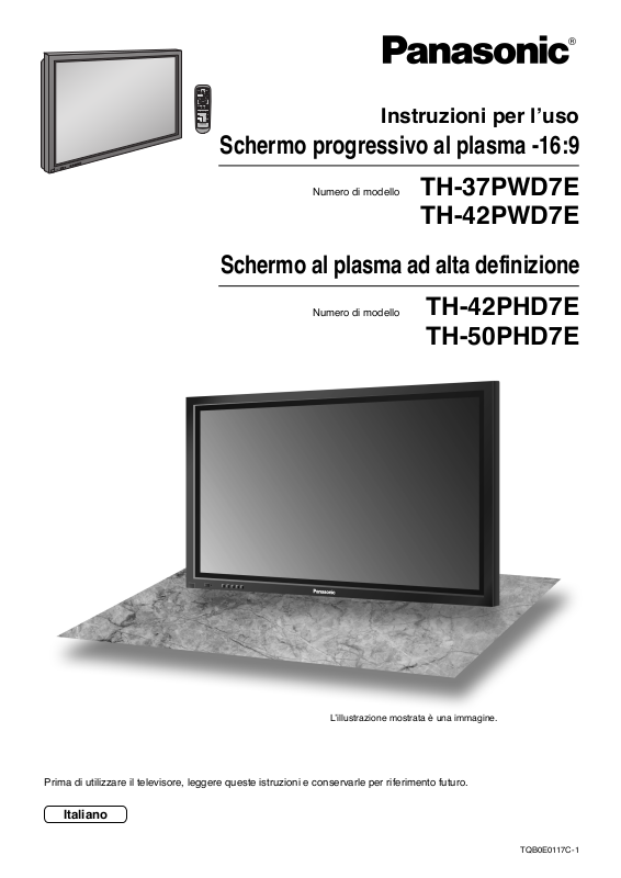 Questi apparecchi TH-37PWD7E, TH-42PWD7E, TH-42PHD7E, TH-50PHD7E, sono fabbricati in paese C.E.E., nell