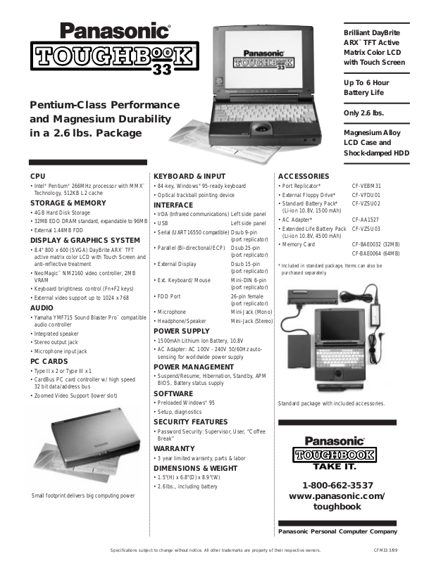 • AC Adapter: AC 100V - 240V 50/60Hz autosensing for worldwide power supply