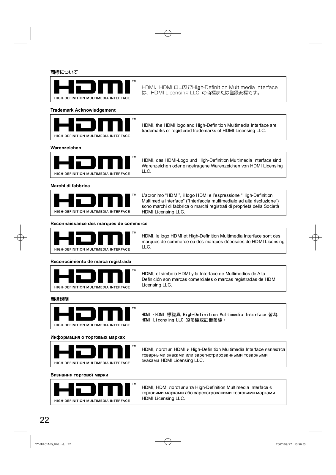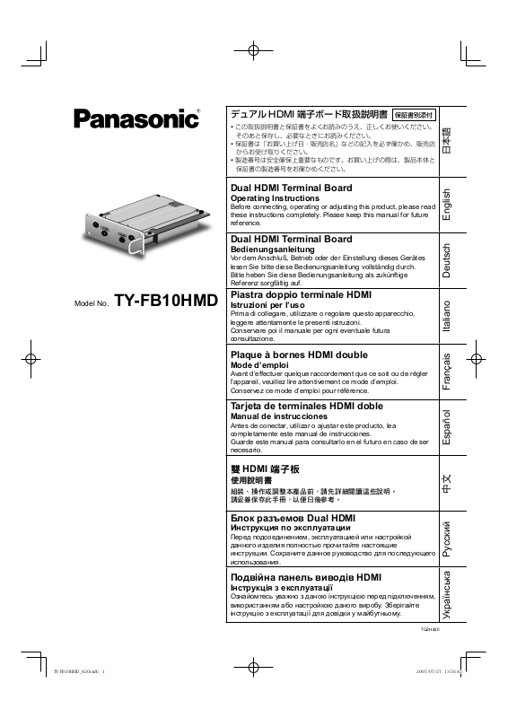 Panasonic TYFB10HMD User Manual [en, ru, de, es, fr, it]