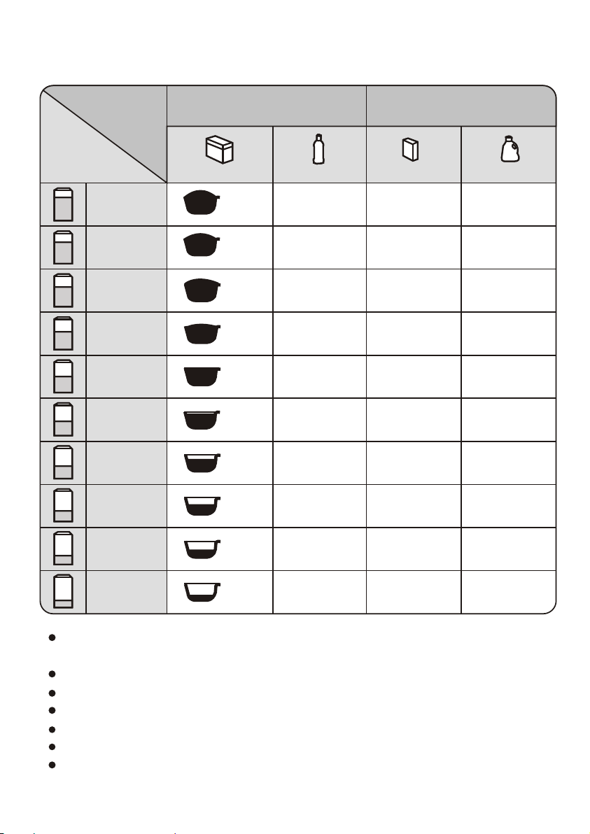 当使用上表以外的洗涤剂时,请参看上表所列水量和洗涤剂包装上的说明。