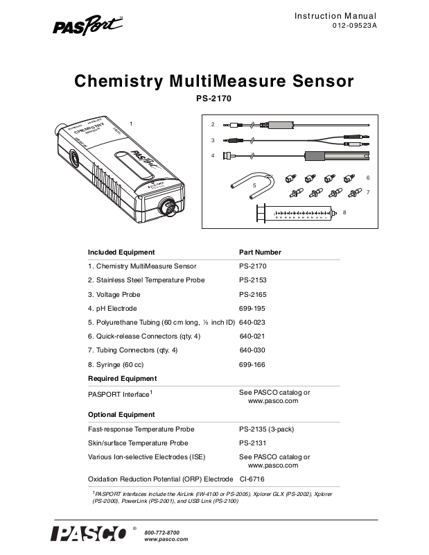 may be trademarks or service marks of, and are used to identify, products or services of, their respective owners. For more information visit www.pasco.com/legal. Teflon is a registered trademark of DuPont.