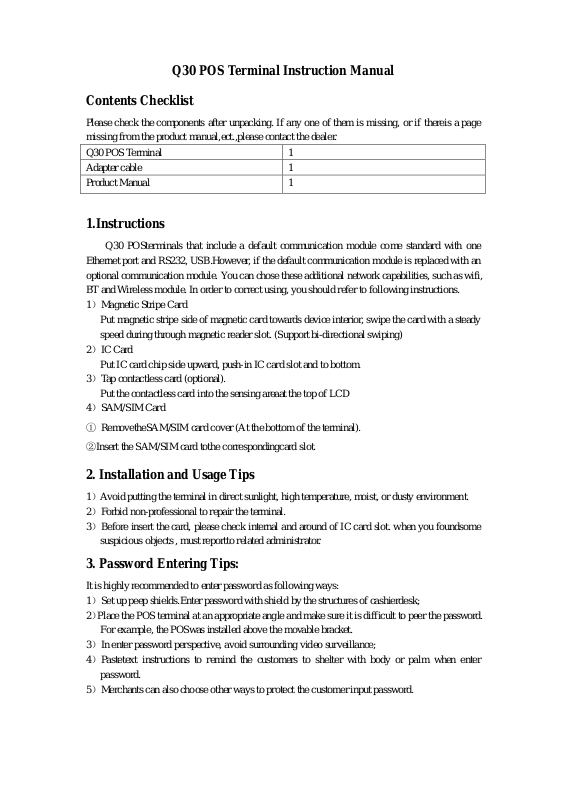 2)Place the POS terminal at an appropriate angle and make sure it is difficult to peer the password.