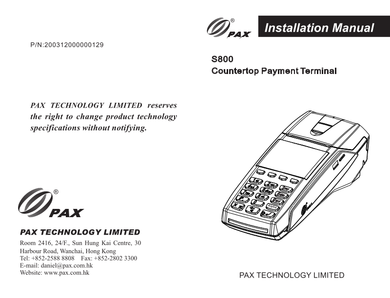 PAX Technology S800RF UserMan