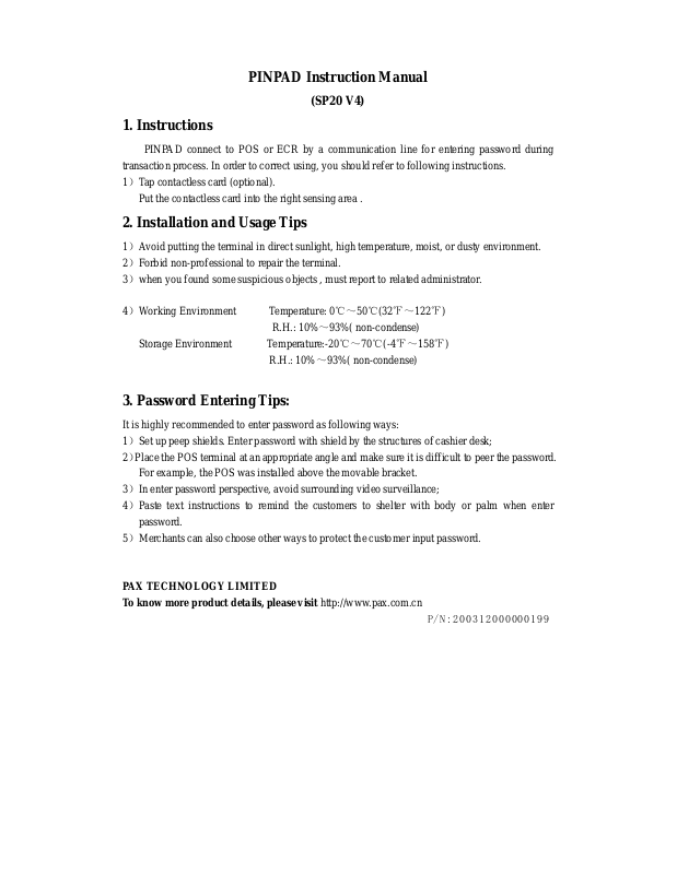 2)Place the POS terminal at an appropriate angle and make sure it is difficult to peer the password.