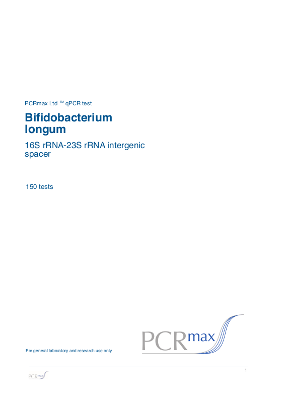 The PCR Max qPCR Kit for Bifidobacterium longum (B.longum) genomes is designed for