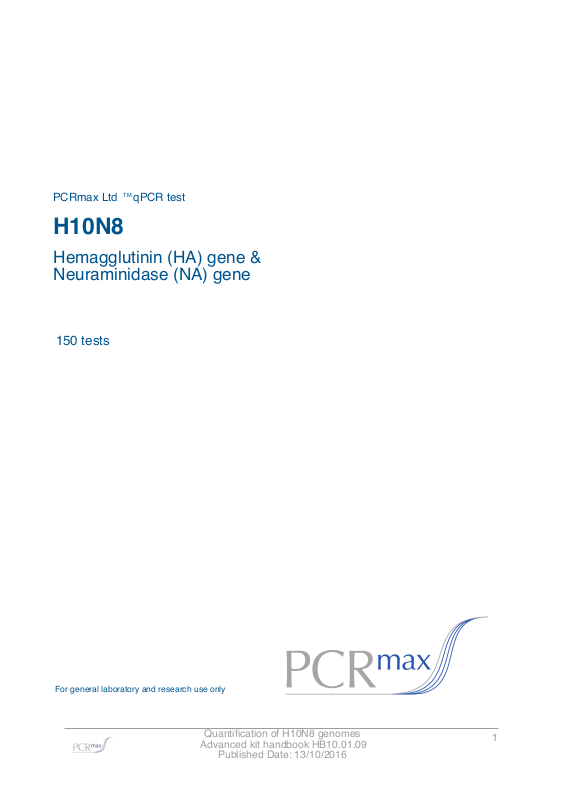 The PCRmax™ qPCR Kit for H10N8 (H10N8) genomes is designed for the in vitro