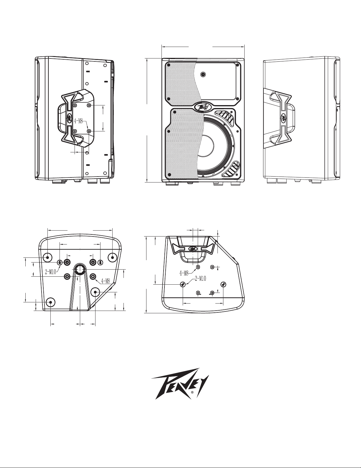 destro in un recesso della maniglia, e un set di quattro sulla parte inferiore, che usa la staffa di supporto Peavey Versamount