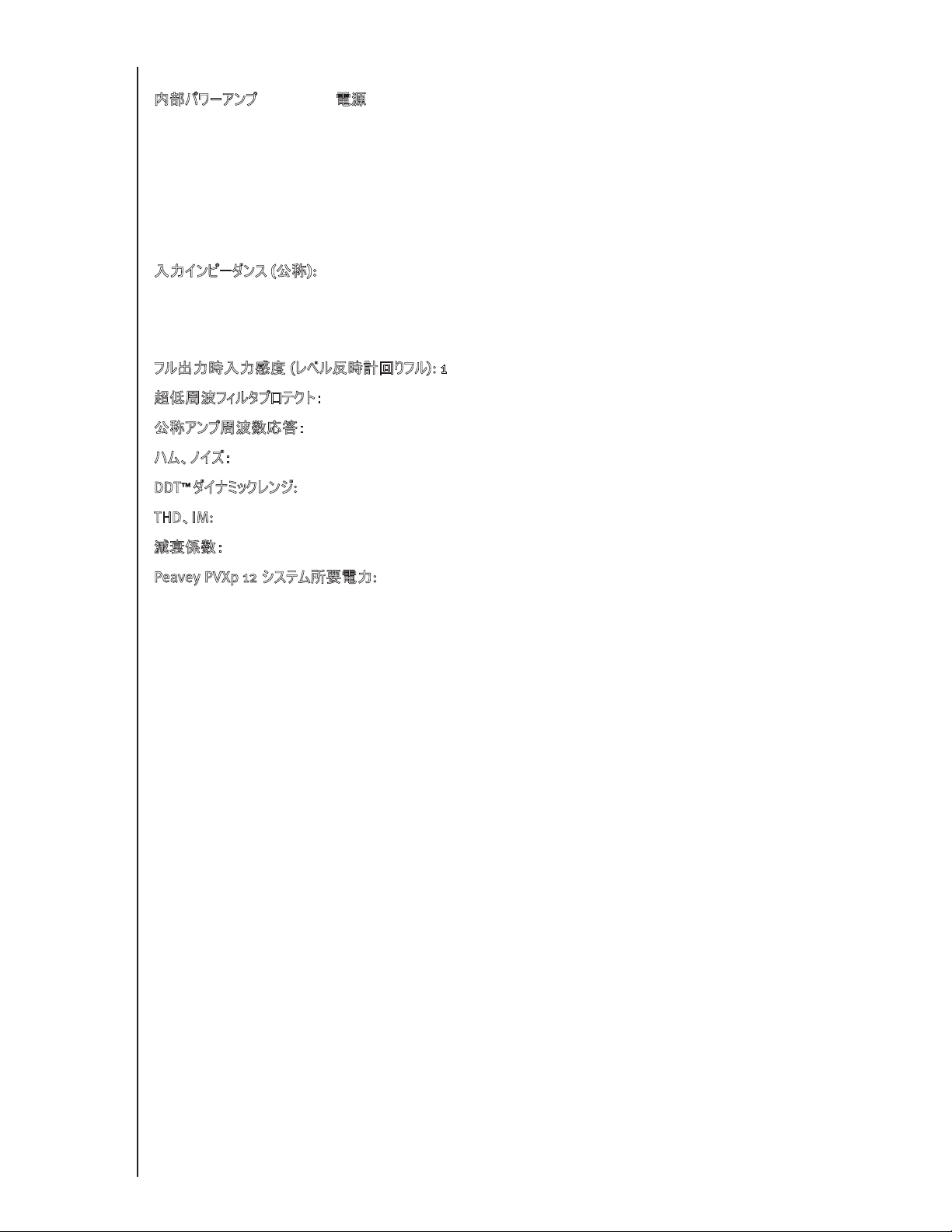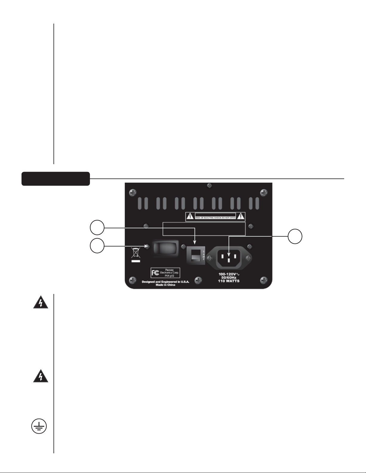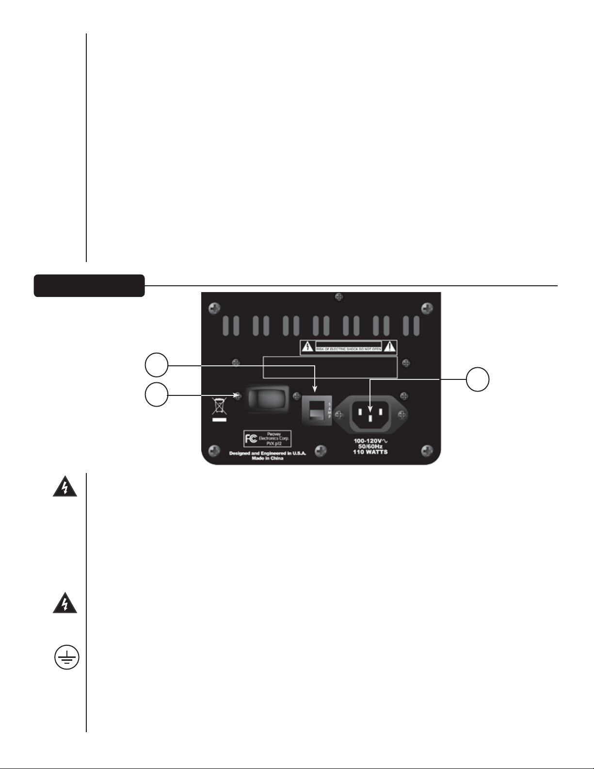 Requisiti di potenza del sistema Peavey PVXp 12: 110 Watt nominale, 100-120 VCA 50-60 Hz
