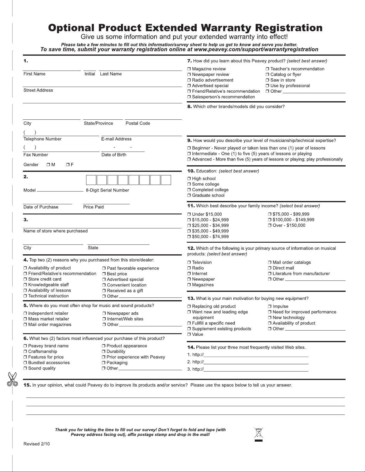 U.S. customer warranty registration.