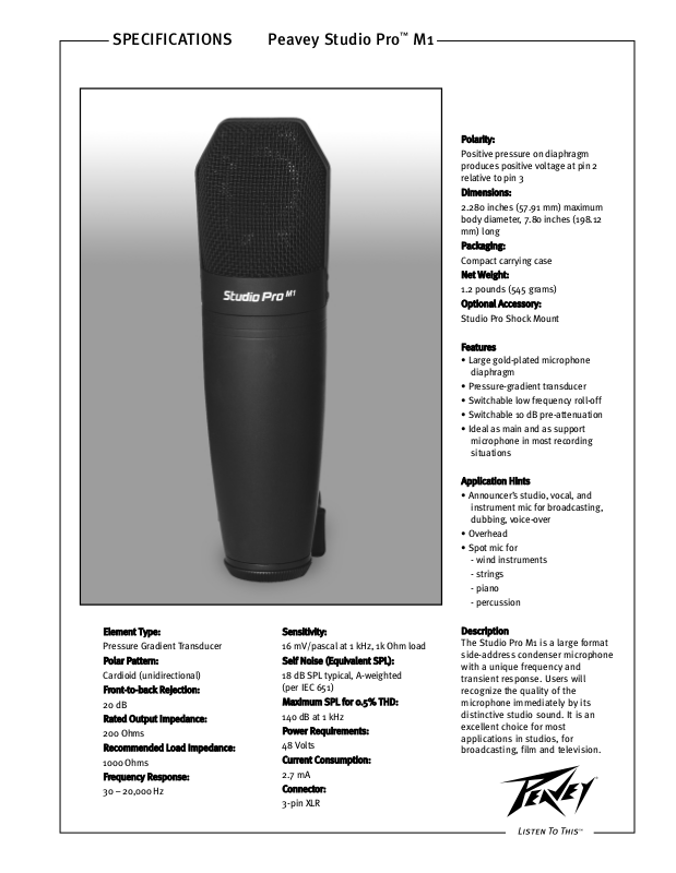 16 mV/pascal at 1 kHz, 1k Ohm load