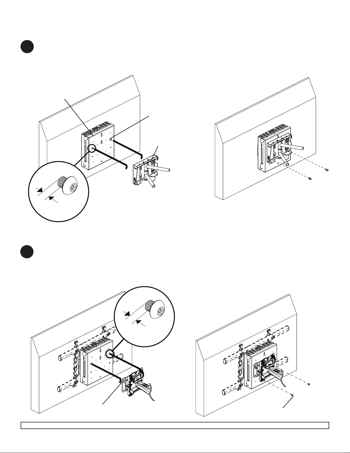 articulating mount use M10 x 15 mm screws (supplied with mount).