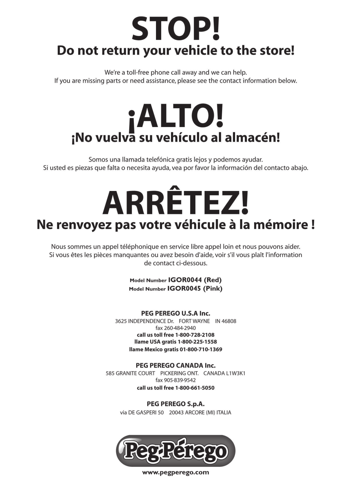 Peg Perego IGOR0045, IGOR0044 Owner's Manual
