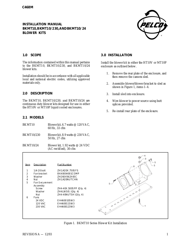 BKMT10 Blower kit, 6.7 watts @ 120 VAC,