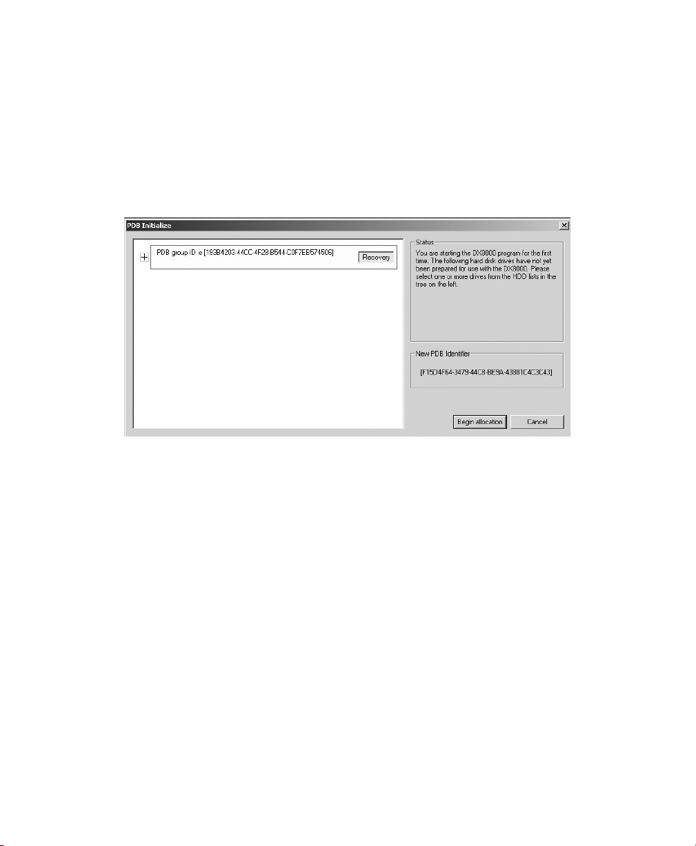 22. Click Begin Allocation to start the database initialization. The DX8000 will take about 5 to 10 minutes to initialize the