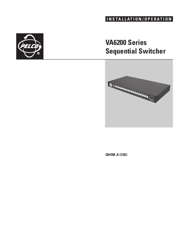 The VA6200 Series Sequential Switchers manually or automatically switch multiple cameras to a monitor. You can switch up to