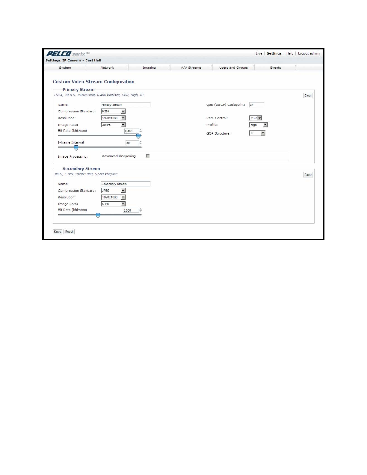 dual streams can be configured for a variety of resolutions, frame rates, and bit rates.