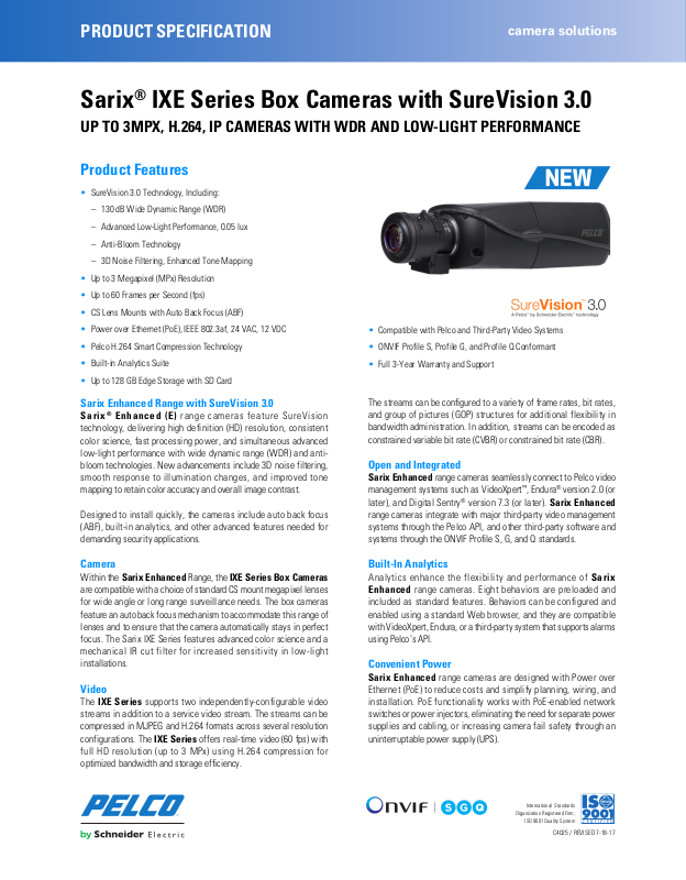 Within the Sarix Enhanced Range, the IXE Series Box Cameras