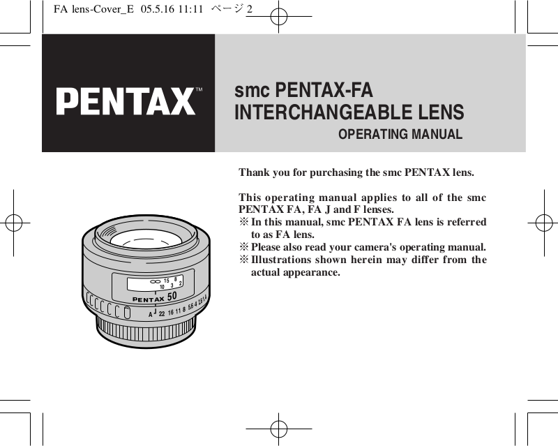 Pentax INTERCHANGEABLE LENS User Manual