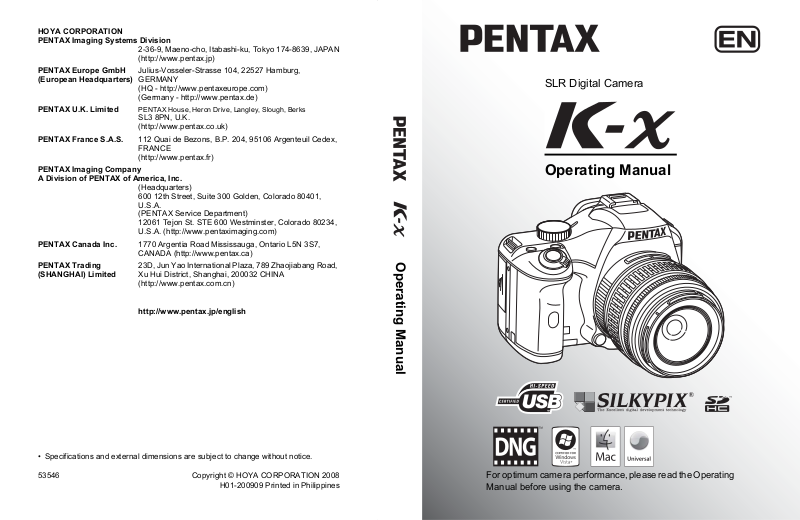 PENTAX, a and smc PENTAX are trademarks of HOYA CORPORATION.